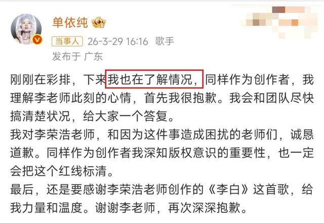 这回音乐圈的前代与后代的风云,说白了便是单依纯并没有版权认识,也丢了口碑。