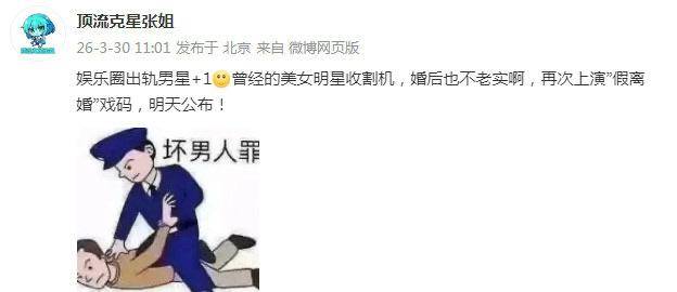 另有一个瓜是“男星出轨”,爆料人说这位男星是也曾的美女明星收割机,婚后也不忠厚,还上演“假离异”戏码。